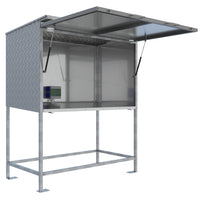 - Regenschutzklappe: Eine aufklappbare Regenschutzklappe, unterstützt durch eine Gasdruckfeder, schützt die Arbeitsfläche vor Niederschlägen und ermöglicht ein einfaches Öffnen und Schließen.