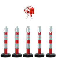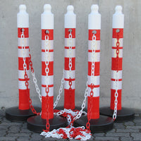 SET aus 5 Kettenpfosten inkl. 25M Kette Ø 7mm, rot/weiß